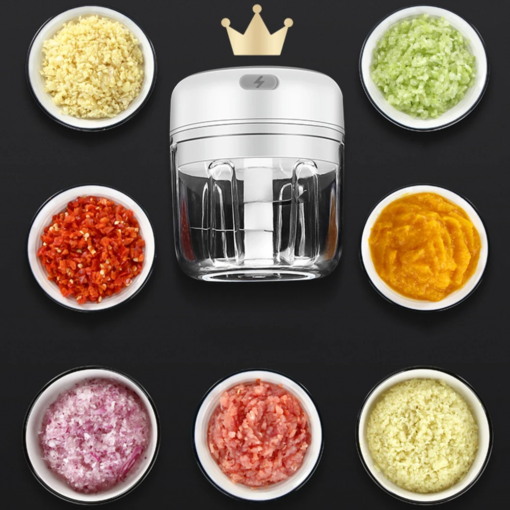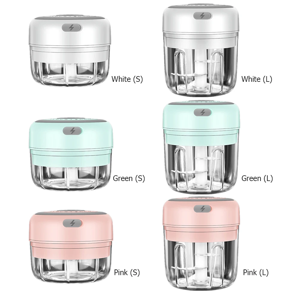 Practical Electric Garlic Vegetable Shredder Onions Cutter Meat Grinder Kitchen Tool High Speed Garlic Crusher Kitchen Accessories Feature: The stainless steel blade is durable, strong and can be cut efficiently. Powerful function, the sharp blade of the garlic cutter can quickly cut up garlic, seasoning, nuts, vegetables, meat, etc., which is very suitable for small food. Unique interior wall design allows for easy shredding with fewer ingredients. Specification: Color: White, Green, Pink Size: S: 8.7x7.7cm / 3.4x3.0in, 100ml L: 8.7x9.7cm / 3.4x3.8in, 250ml Material: stainless steel + ABS Power supply: USB charging Power: 30 W Rated voltage: 5V Note: Due to the different monitor and light effect, the actual color of the item might be slightly different from the color showed on the pictures. Thank you! Please allow 1-3mm measuring deviation due to manual measurement.