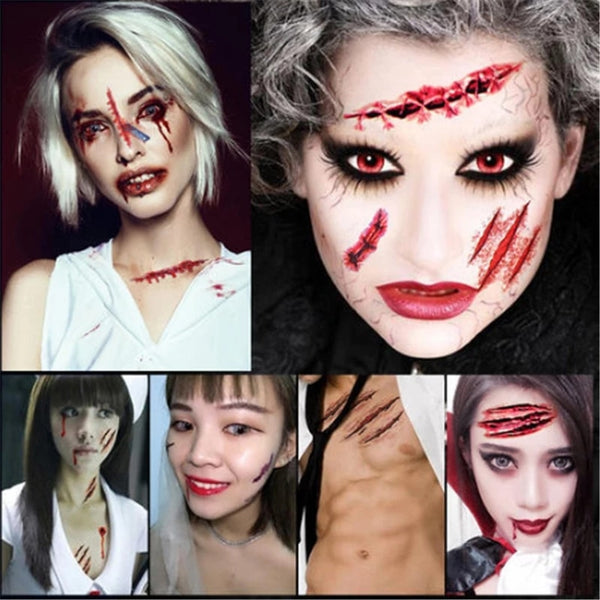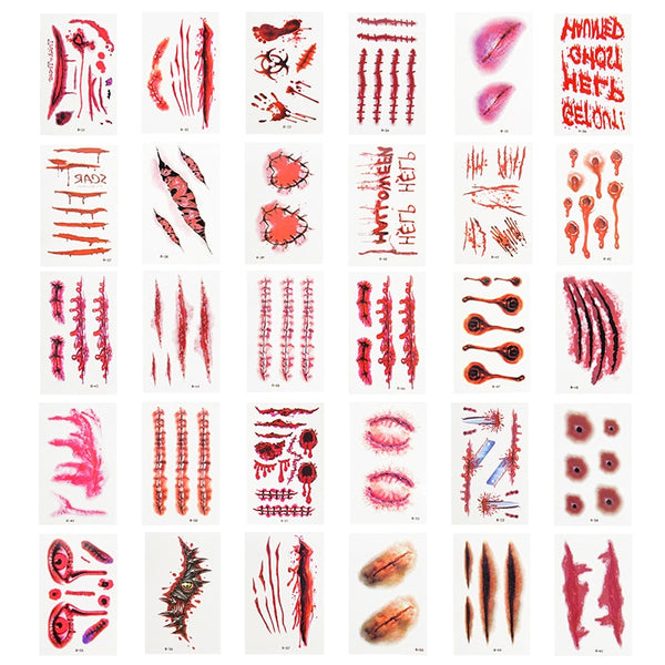 30 Sheets Halloween Scar Tattoo Stickers Scary Bloody Waterproof Temporary Fake Tattoo Halloween Party Decoration Horror Props